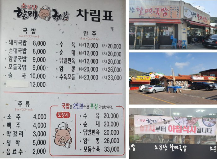 돼지국밥 순대국밥 수육 암뽕 술국..