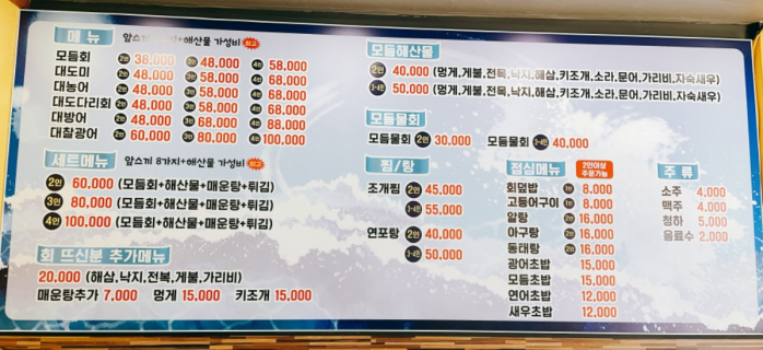 다양한 해산물의 선택폭이 무엇보다도.. 저희는 둘이서 세트메뉴(2인) 6만원 시켰구요~