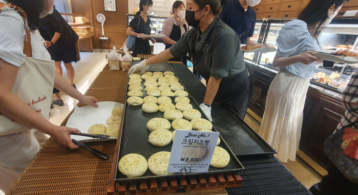 매일 빵을 만들자마자 내 놓는대로 팔립니다. 새 빵을 사가려고 줄을 섭니다.