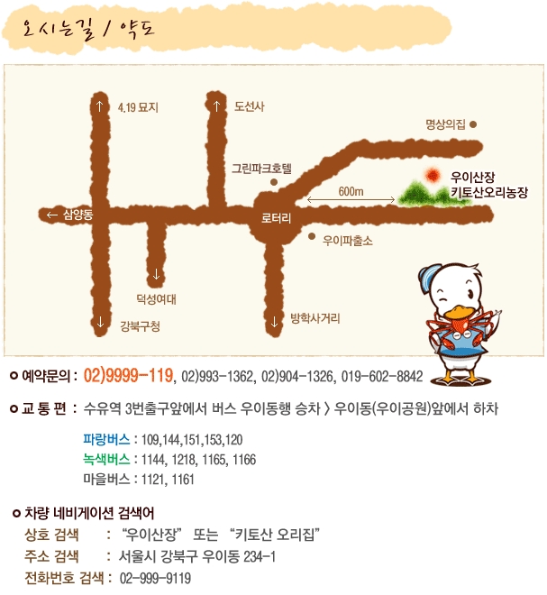 우이동 먹거리 마을 간판안 600미터 지점 왼쪽에 위치