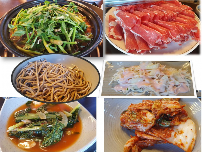 샤부샤부 건져 먹는 미나리와 버섯의 맛이 좋아요