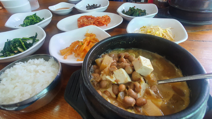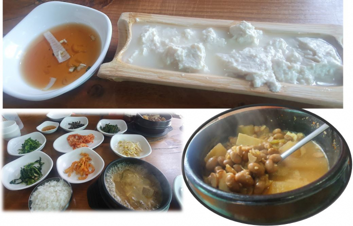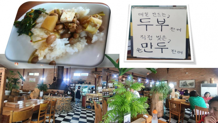 100% 장단콩을 사용하는 두부가 날마다 직접 만들어 진답니다. 청국장은 유기농 볏단을 가져다 띄워 전통적인 방식으로 맛을 냈다네요.