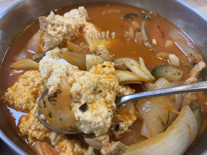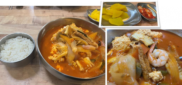 순두부 듬뿍, 돼지고기 새우 오징어 조개 해초 죽순 버섯 양파 호박 마늘 당근