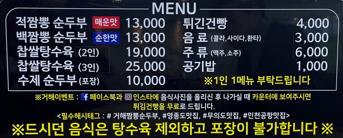 두부가 참 맛있다. 그리고 순두부 빨간짬뽕이든 하얀짬뽕이든 (매운맛이든 순한맛이든)