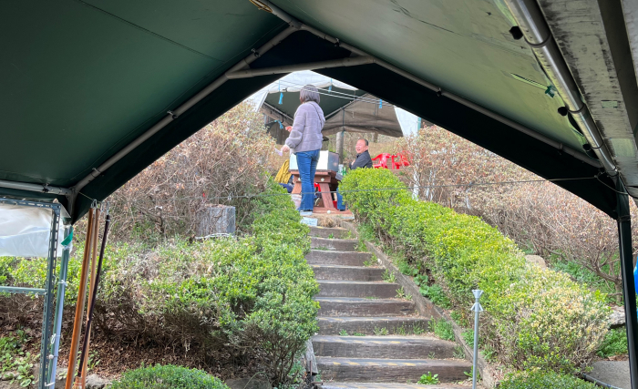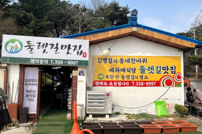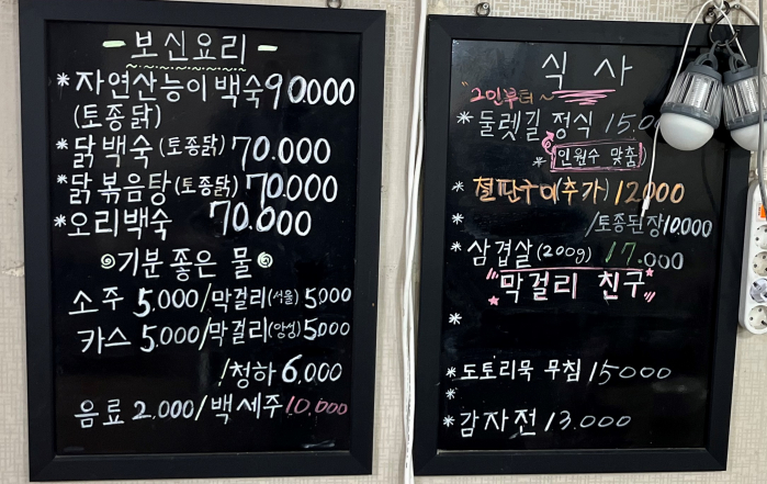 그리고 몸보신 닭백숙은 저 위의 야외 테이블에서 숲 속 공기와 함께 드시는 게 좋을듯하네요. 둘렛길정식 같은 메뉴는 반찬 그릇이 많아서 계단 왔다갔다 불편하실테니 아래 실내에서 드셔야 하나 봅니다.