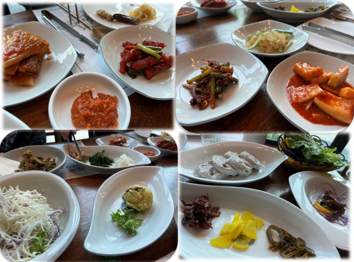 시골 농가에 세 자매가 텃밭에서 채소를 가꿔가며 직접 농사지은 재료로 정성스레 음식을 만드는 농가맛집인데 맛있고 친절하고 실내 분위기와 뷰가 좋으며 정갈하게 담아 나오는 푸짐한 한정식 스타일