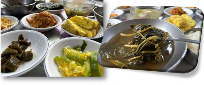 아욱국 콩나물국 김치국 미역국 있는데 그래도 시그니처 메뉴인 아욱국을 시켜 먹었다는..