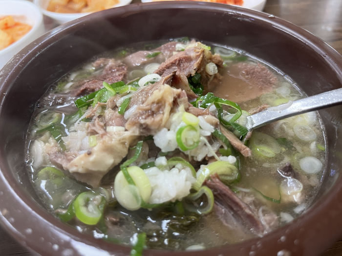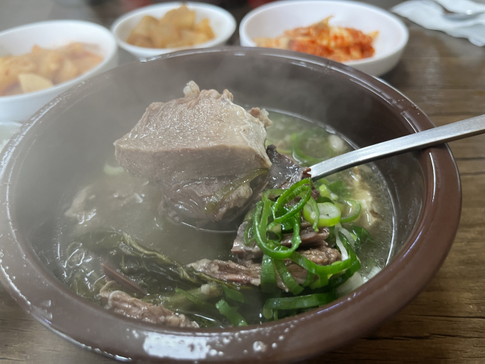 뜨끈한 국밥의 국물 맛이 좋아 입가에 미소가 절로 피어지고