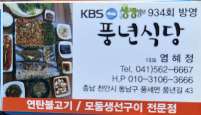 천안시 풍세면 풍년길 43 연탄불고기 모둠생선구이 전문점