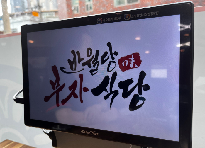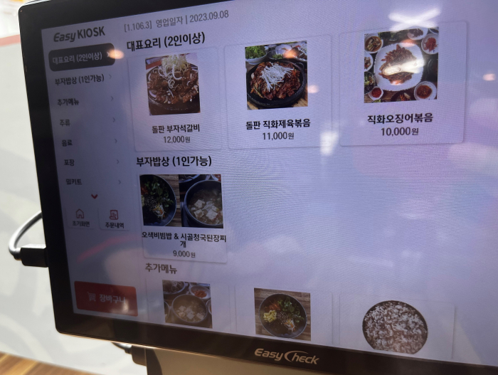 테이블마다 설치돼 있는 소형 탁상 키오스크 주문 스크린