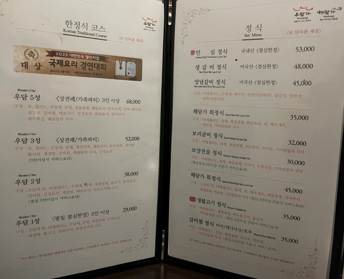 한우코스 활어회코스 한정식코스 상견례 각종연회