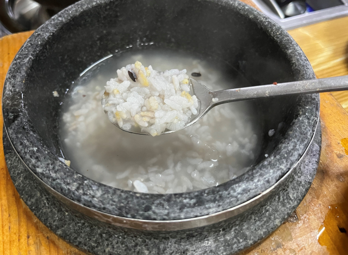 찰진 밥맛이 좋아서 다 먹게 되고 누룽지까지 먹으니 집밥이라 할 수 있어요