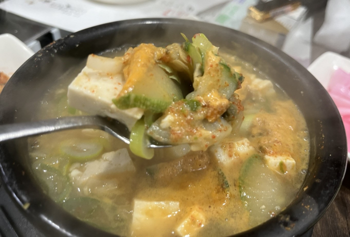 된장이 좀 매콤합니다. 그래서 숫가락이 많이 가는지도 모릅니다. 된장국 안에서 호박 두부 그리고 조갯살이 건져집니다. 사이드디쉬 하나하나 다 신선하고 맛있습니다.
