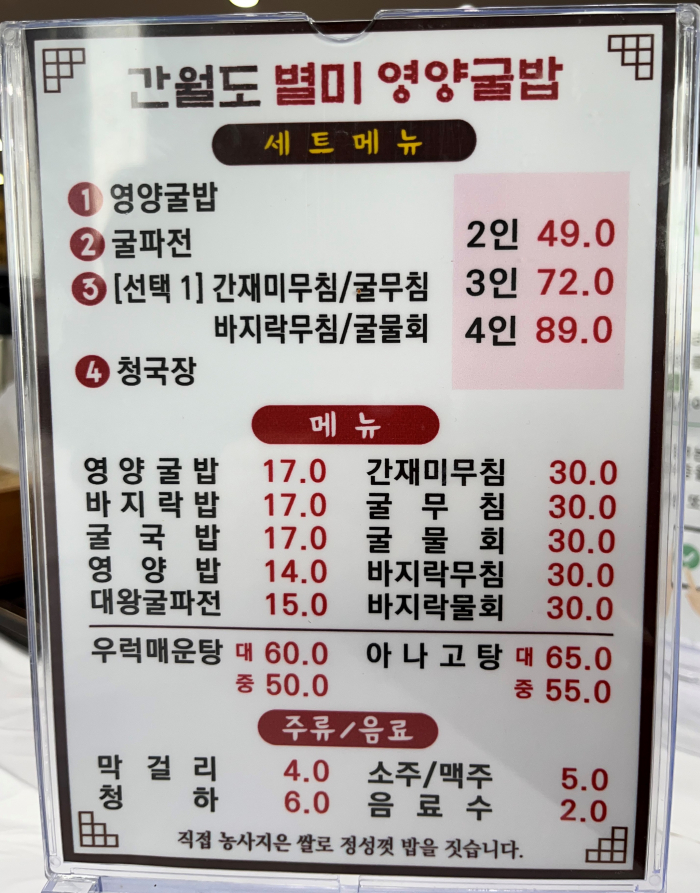 영양굴밥 굴전 달래간장 굴물회 청국장 굴무침 ..