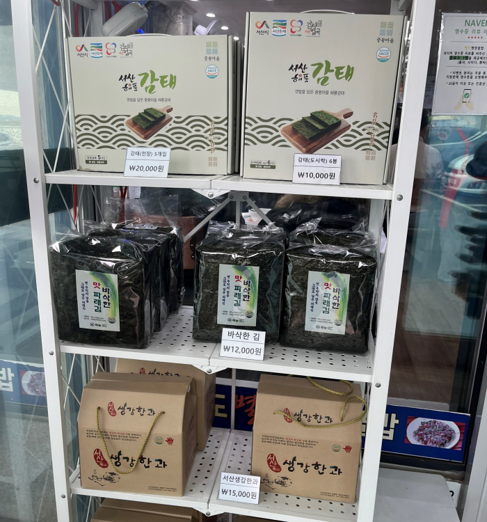 집에 갈 때 서산감태, 구운 김이나 파래김, 또는 생강한과 등 사 갈 수 있답니다.