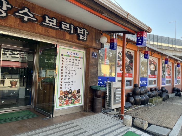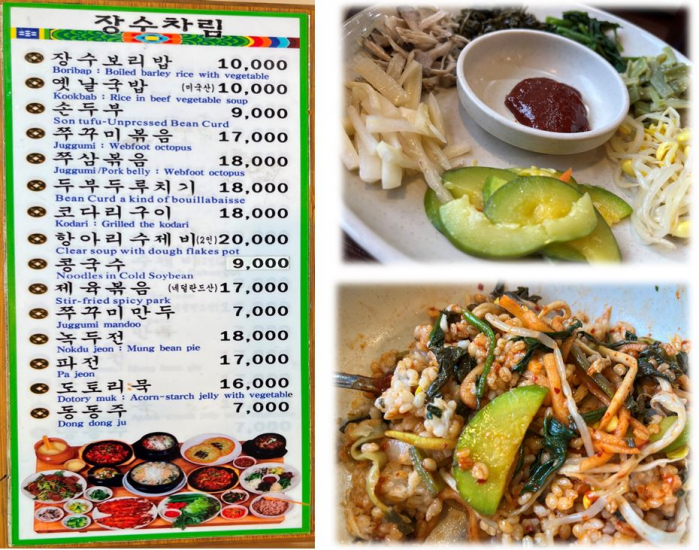 일단 <장수보리밥>식당 외벽에 <장수차림>이라는 메뉴 리스트와,