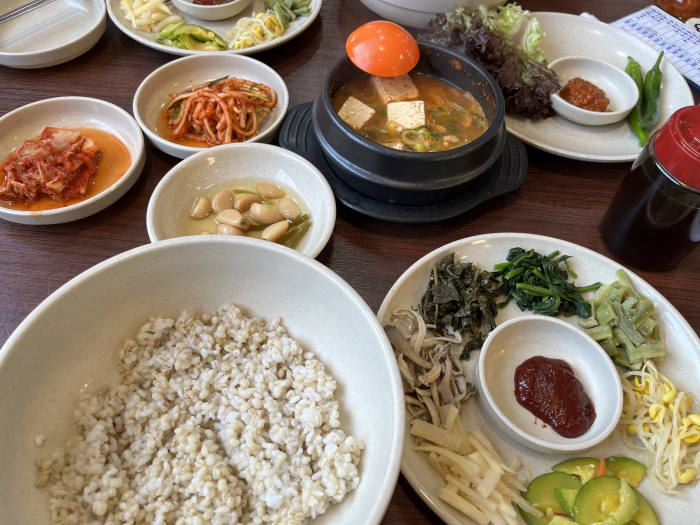 저희는 소박하게 보리밥을 시켰어요. 이 집의 시그니처 메뉴이니까요.