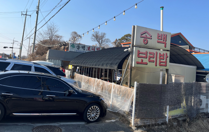 시골 길가에 있는데 주차할 곳도 넉넉지 않은데