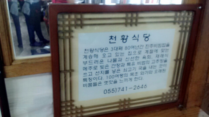 진주의 전통음식인 진주비빔밥을 진주 중앙시장에서 3대째 80여년간 계승하고 있는 곳으로 오랜 전통을 담아 소박하지만 질리지 않고 자꾸 끌리는 맛이 매력적인 곳입니다. 저희집만의 특징은 장맛으로 안마당에 있는 40여개의 장독에서 잘 발효된 간장, 된장, 고추장을 넣고 잘게 썬 나물, 신선한 육회와 함께 비벼먹는 맛이 일품입니다. 또 소고기선지국물이 함께 나와 든든하고 영양 가득한 한끼로 손색이 없습니다. 목조 기와집에서 맛보는 소박하지만 정성 가득한 비빔밥을 부담없이 즐겨보세요.