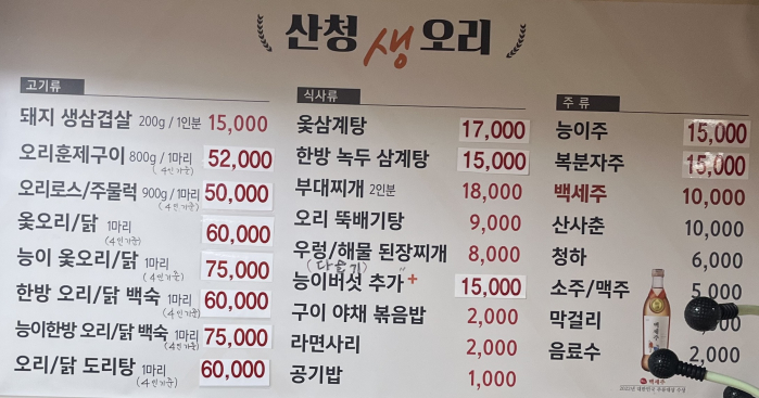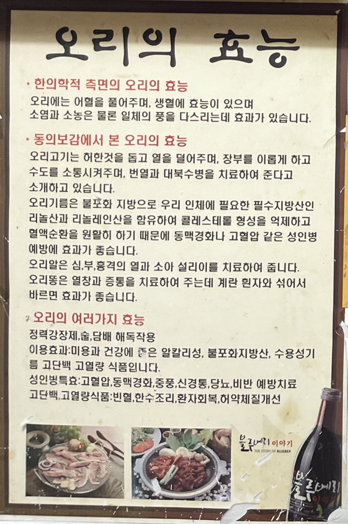 오리주물럭구이 오리뚝배기탕 옻삼계탕 점심백반 ..