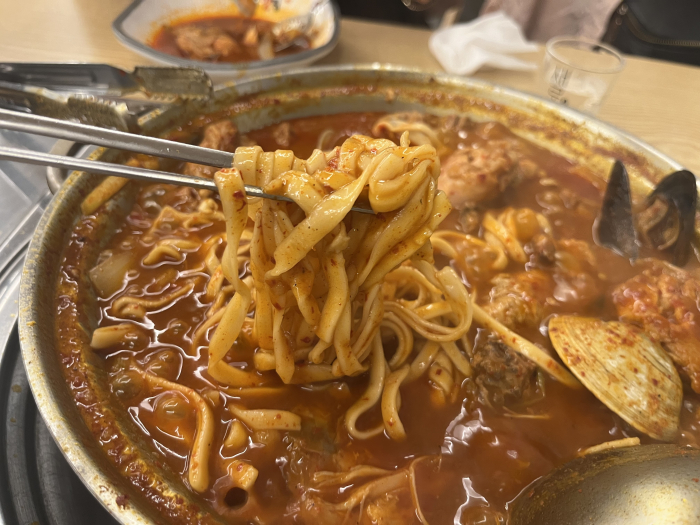 저는 칼국수 사리를 넣어 먹었어요. 근데 미리 익혀 온 사리를 넣었어야지 그냥 생 사리 면을 넣으니까 식감이 좀 ..