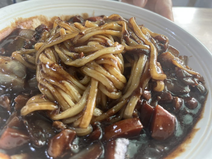 아주 작게 썰어 온 고기와 작은 오징어 살을 얹어 오니 다른 짬뽕집의 홍합 조개 살 같은 것보다 맛있었어요. 짜지도 않고 맵지도 않은 빨간 국물인데 간도 되어 있고 얼큰했다는 것이지요.