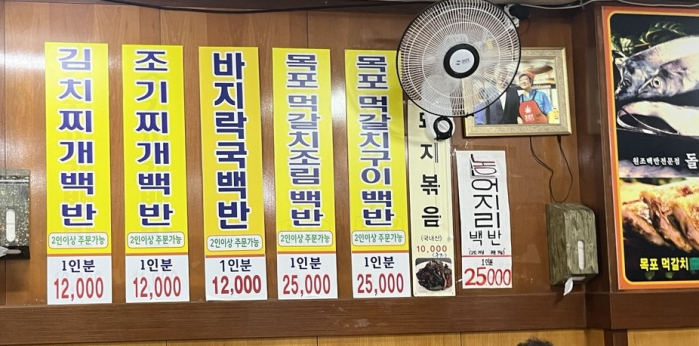 전라도식 백반전문점 먹갈치찜 목포먹갈치백반 김치찌개백반 조기찌개백반