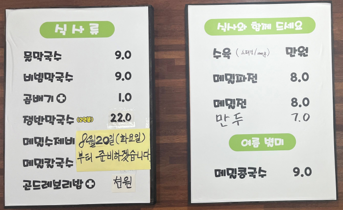 가격표입니다. 2024년 8월 연일 폭염이 지속되던 때
