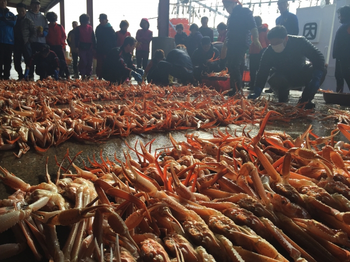 강구항의 아침은 해가 미처 떠오르기 전에 시작해서 일출을 즈음해 대게 잡이를 나간 배가 들어올 때쯤 활기를 띤다. 배가 들어오면 가장 먼저 바바지는 것은 경매상들, 알아들을 수 없는 언어와 손 신호가 몇 번이 왔다 갔다 하면 만선이라도 금방 비워진다 그만큼 영덕대게에 대한 선호도가 높다는 소리이다. 경매를 통해 판매되는 대게는 대부분 부두 인근 100개에 이르는 상인들의 차지인데 속이 꽉 찬 대게는 10만원이 넘고, 박달대게로 불리는 최상급 대게는 이보다 훨씬 비싸다. 경매장 한쪽엔 어시장이 형성되어 있는데 이곳에서 거래되는 대게는 3만원에서 6만원 선이다. 집에 가져가서 쪄 먹어도 되지만 5천원 정도 지불하면 시장과 연결된 상점에서 대게를 쪄 준다, 강구항의 대게 철은 통상 11월에서 4월 사이이다. 특히 6월에서 10월 사이에는 산란기이기 때문에 어민들 스스로 대게를 잡지 않는다. 이때는 강구항이라 하더라도 러시아산이나 북한산 대게가 거래된다. 맛있는 대게를 먹기 위해선 수입물과 영덕대게를 구별할 줄 알아야 하는데 등이나 다리 등에 하얀 반점이 많이 있으면 북한이나 러시아산으로 보면 되고, 배 부분을 눌러 단단한 것을 고르는 것이 좋다. 아울러 삶기 전부터 홍색을 띠고 잇으면 이는 대게가 아닌 홍게이다. 가장 확실한 방법은 영덕군에서 보증하는 딱지가 붙은 대게를 사면 된다.