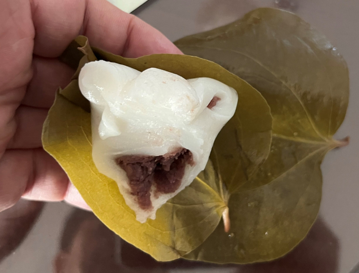 야산의 망개잎을 삶아 떡을 포장하니 쫄깃한 식감을 유지하며