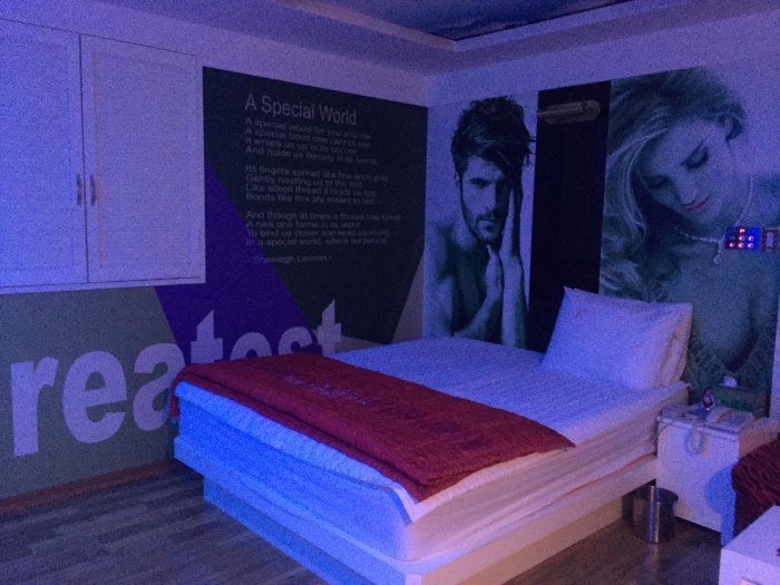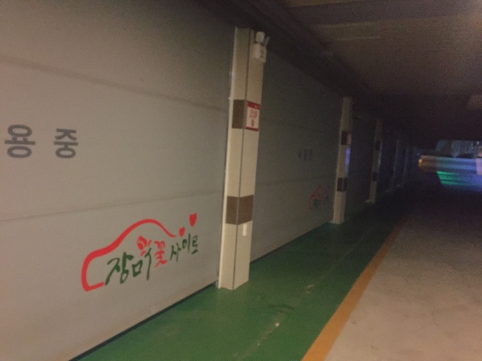 셔터가 열려 있는 곳으로 차를 주차하고 들어가 셔터를 내리고 자동체크인 기계에서 카드 또는 현금으로 지불한다. 대실 2만원 숙박 4만원이다.