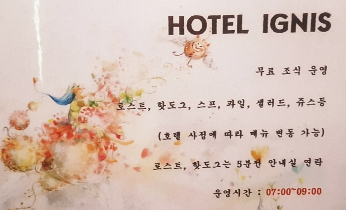 숙박손님에게 06:30~09:30 간단한 미국식조식 (American Breakfast) 제공