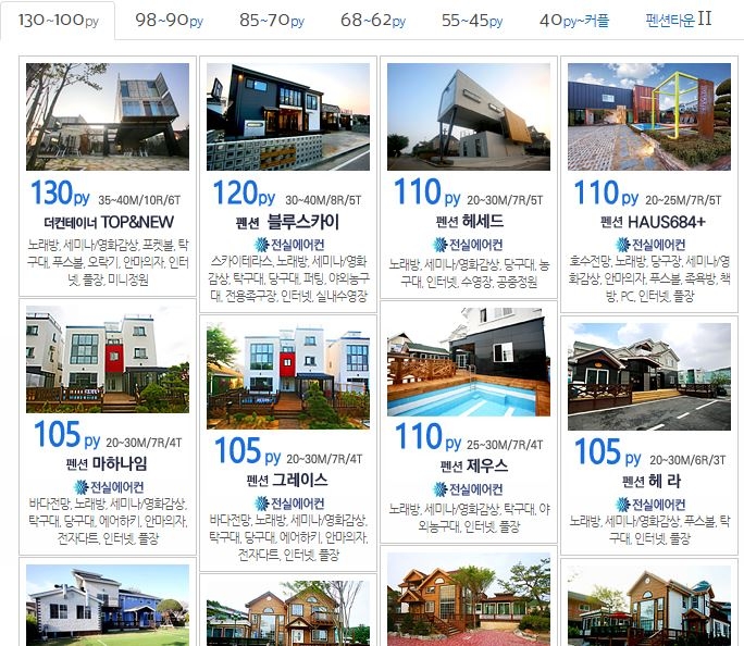 130평 독채 풀빌라 부터 16평 커플펜션까지 다양한 선택