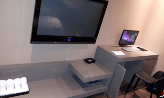 평면 TV와 전용 욕실을 갖추고 있습니다. 무료Wi-Fi 제공하구요, 전기콘센트, PC, 커피 포트 등이 있어요..