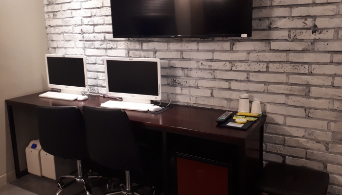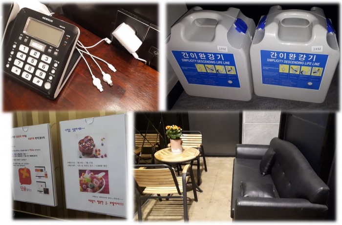 인터넷 PC도 2대이고, 와이파이도 제공한다. 충전 세트도 2세트가 마련되어 있고 안전을 위한 완강기 2대도 비치되어 있는 게 특징이다.