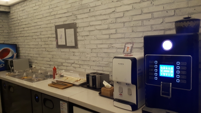 1층 로비에서 커피도 뽑고 샌드위치도 만들어 먹고 할 수 있다.