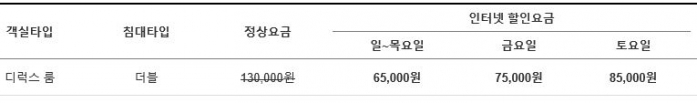 부대시설스파욕조, 대형 LED TV, 초고속 인터넷 PC, 냉장고, 전기포트, 화장대, 커피/차, 생수/음료제공, 객실 및 욕실전용 슬리퍼, 목욕가운