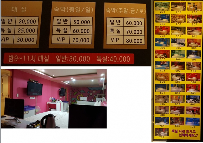 객실을 보고 좋아하는 색깔 선택하여 들어갈 수 있어요