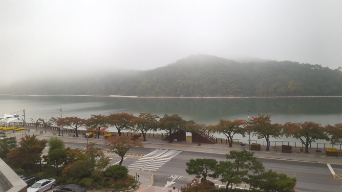 ▲ 호텔 방안에서 내다 본 남한강 뷰