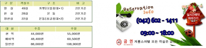 문 의 : 남 온천탕(042.602.1462) / 여 온천탕(042.602.1466)