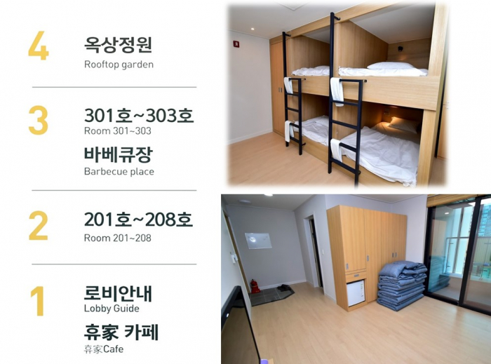 11개의 객실과 카페, 도미토리, 바베큐장, 옥상정원 등으로