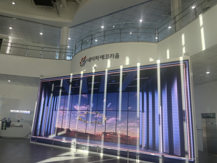 관람객을 맞이하는 대화면 LED전광판을 통한 아나몰픽미디어아트 영상을 구현