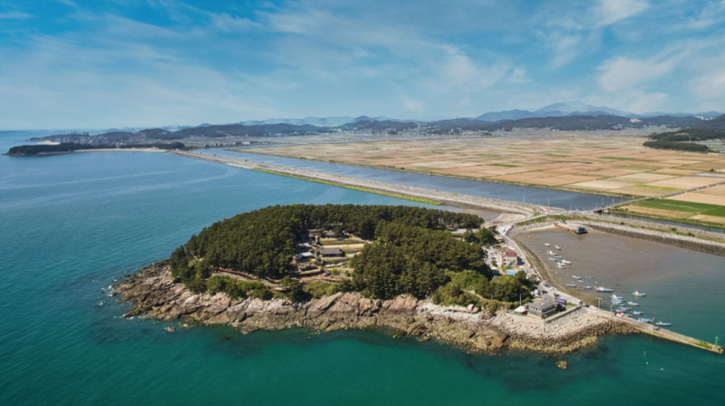 섬 전체를 둘러싼 2km 구간의 지붕형 "회랑"은 세계에서