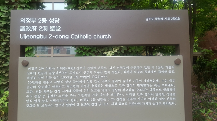 의정부2동 성당은 6.25전쟁을 전후한 시기의 성당건축 변화와 시대적 상황을 잘 나타내고 있으며 평면 및 구조, 의장 등에서 건축사적 가치가 높고 비교적 원형이 잘 보존되어 있다. 찾아가는 길