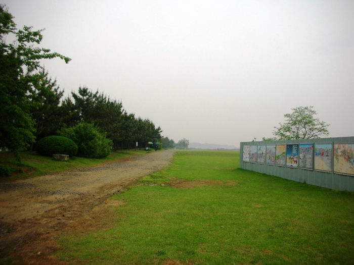 ▲ 넓은 산책길도 있으며 왼쪽의 나뭇길아래는 벚꽃길이며 오른쪽의 갯골스토리텔링공모전 당선작이 만화로 소개되어 있어 발길을 멈추게 한다.