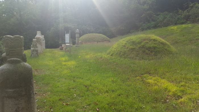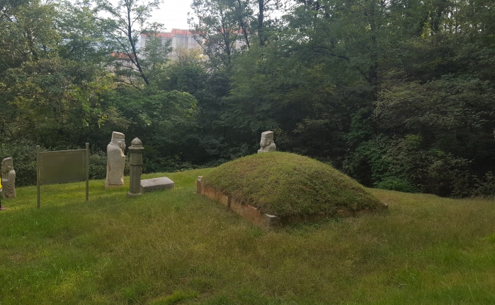 묘 앞에는 상석, 향로석, 문방석, 그리고 좌, 우에는 망주석과 문안석이 있다.