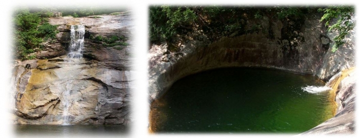 | 십이선녀탕은 북면 용대리에 위치하고 있다. 폭포와 탕이 연속으로 구슬같은 푸른 물과 우뢰와 같은 괴성으로 갖은 변화와 기교를 부리면서 흐르는 모습은 정말 장관이다란 말이 절로 나오게끔 한다. ◇ 십이선녀탕으로 가는 오솔길-남교리 매표소에서 도보로 2시간정도 걸린다 옛말에 12탕 12폭을 흔히 십이선녀탕이라고 불러 왔으며, 탕의 모양이 장구한 세월에 거친 하상작용에 의해 오목하거나 반석이 넓고 깊은 구멍을 형성하는등 신기하고 기막힌 형상을 이룬다. 십이선녀탕을 찾아가는 계곡에는 단풍나무.전나무.박달나무.소나무등 거목이 우거져 있어, 계곡의 모습이 황홀하기 그지없다. 십이선녀탕계곡은 물을 건너는 곳마다 많은 철다리가 놓여있으나, 전형적인 V자 협곡이므로 폭우가 내린 경우에는 상류까지 올라가지 않는 것이 좋다고 한다. 이 계곡은 가을단풍철을 제외하고는 일년내내 찾는 사람들이 많지 않다. 계곡 최상류에서 안내판을 따라 대승령까지 가는 경우 길을 혼동하기 쉬운 지형이므로 주의해야 하며 특히 안개가 끼거나 비가 올 경우 길을 잘못 드는 일이 많으므로 나침반과 지도를 준비하는 것도 좋다. 남교리에서 십이선녀탕계곡으로 올라 대승령을 거쳐 장수대로 하산하는 데에는 걷는 시간만 7시간 30분~8시간이 걸린다. 장수대에서 출발하여 대승령을 거쳐 십이선녀탕계곡으로 내려오는 경우에도 비슷하다. 중간에 쉬는 시간과 식사시간을 고려하면 최소 10시간 정도는 걸린다고 보아야 한다. 중간에 산장이나 대피소가 없으므로 대개는 아침 일찍 남교리에서 출발하여 장수대까지 하루 일정으로 산행을 마친다.