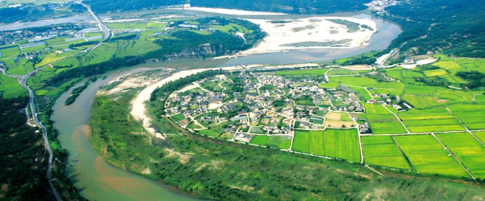 낙동강이 큰 S자 모양으로 마을 주변을 휘돌아 간다. 그래서 하회(河回)라 했다. 오른편 안동시에서 흘러나와 왼 편으로 흘러간다.