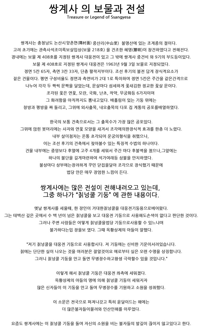 논산 양촌면에 있는 쌍계사는 대둔산 줄기의 불명산 기슭에 숨어있는 사찰이다.