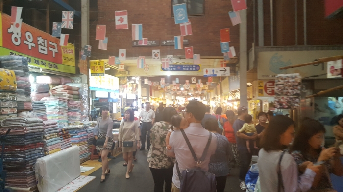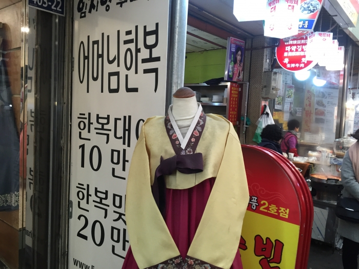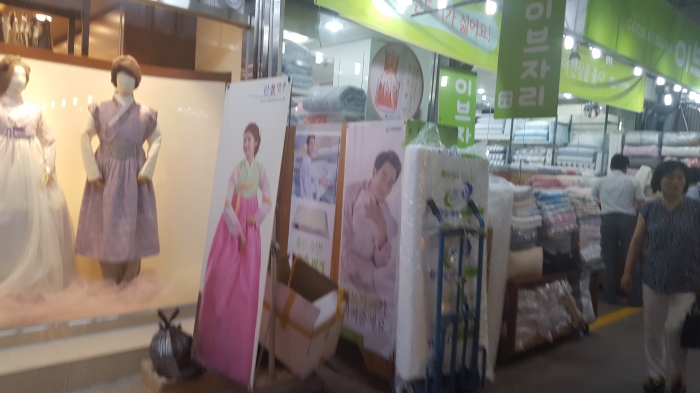 원래는 한복시장이다. 지금도 주단 한복감 직물 상점들이 가장 많다.